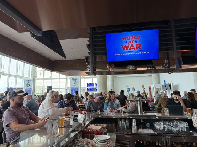 Somehow we were able to get two open seats at the bar. First order of business was to order a couple of screwdrivers. We made it to the airport and cheered our drinks. I always feel like the vacation starts once we get to the airport.