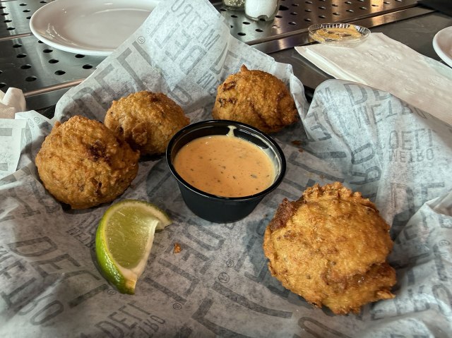 We went ahead and ordered something to drink. I wasn’t hungry, so my husband wound up ordering the conch fritters, knowing I am allergic to conch and wouldn’t want any regardless.