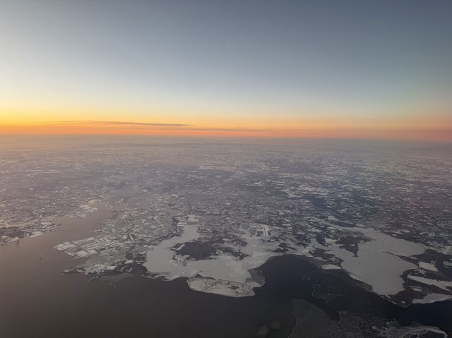 So by the time we took off we were probably about 45 minutes behind schedule. The flight overall wasn’t too turbulent. I thought maybe as we got further north it would be with the cold air, but it wasn’t. As we neared closer to Newark, I looked down and Icould see all the snow below. It looked like we were returning to Antarctica or something.