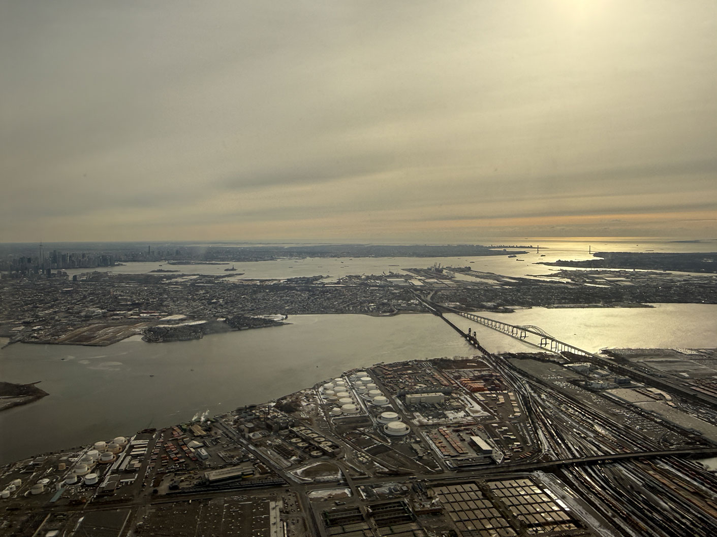 So by the time we took off we were probably about 45 minutes behind schedule. The flight overall wasn’t too turbulent. I thought maybe as we got further north it would be with the cold air, but it wasn’t. As we neared closer to Newark, I looked down and Icould see all the snow below. It looked like we were returning to Antarctica or something.