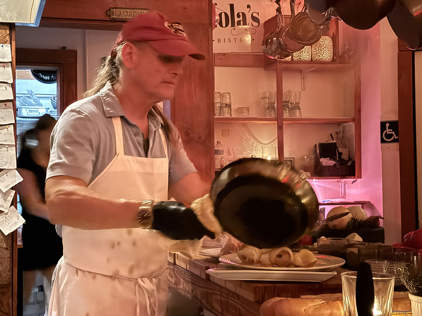 I tend to make it a point not to do Lola’s every time we visit Key West since it is quite pricey. However, if you want a special meal that is prepared right in front of your eyes, then check out Lola’s. Yes there is no menu and cash is only accepted. However, if you know what to expect, you will have a delightful evening. Lola’s only has two seatings per night – 6pm and 8:30pm (it used to be 8:00pm but I believe they made the second seating later to 8:30pm). When you walk in, you will notice that the Chef of Lola’s, Richard cooks behind a completely open kitchen with all his ingredients of what he is going to cook that evening surrounding his cooking station. The ambiance is on the dark side, but that is to capture the lights of all the little candles scattered along the walls. There is no liquor license so be sure to bring a bottle of your favorite wine. Once everyone is seated, the server will announce the menu line up for that evenings – 5 appetizers and 5 entrees. They are known for their scallop appetizer which is always a tasty choice. I decided to have the roasted artichoke hearts to start and the hogfish entree. My husband ordered the tempura batter and braised lobster tail. A couple of others in are party choose that as well. He also went with the hogfish. When the appetizers arrived I saw the lobster tail. It looked amazing and I had to try a taste and it was. My artichoke hearts were tender and full of flavor. When our hogfish arrived (usually there is a bit of a wait between the appetizers and main course), it was piping hot. The fish was accompanied with ravioli in a garlic wine sauce. Nothing was left on our plates, so there was no room for dessert, but if you do have room, I highly recommend the pecan pie if it is on the dessert menu. As I mentioned it is quite pricey, so be prepared for an expensive meal, but you won’t go home hungry.