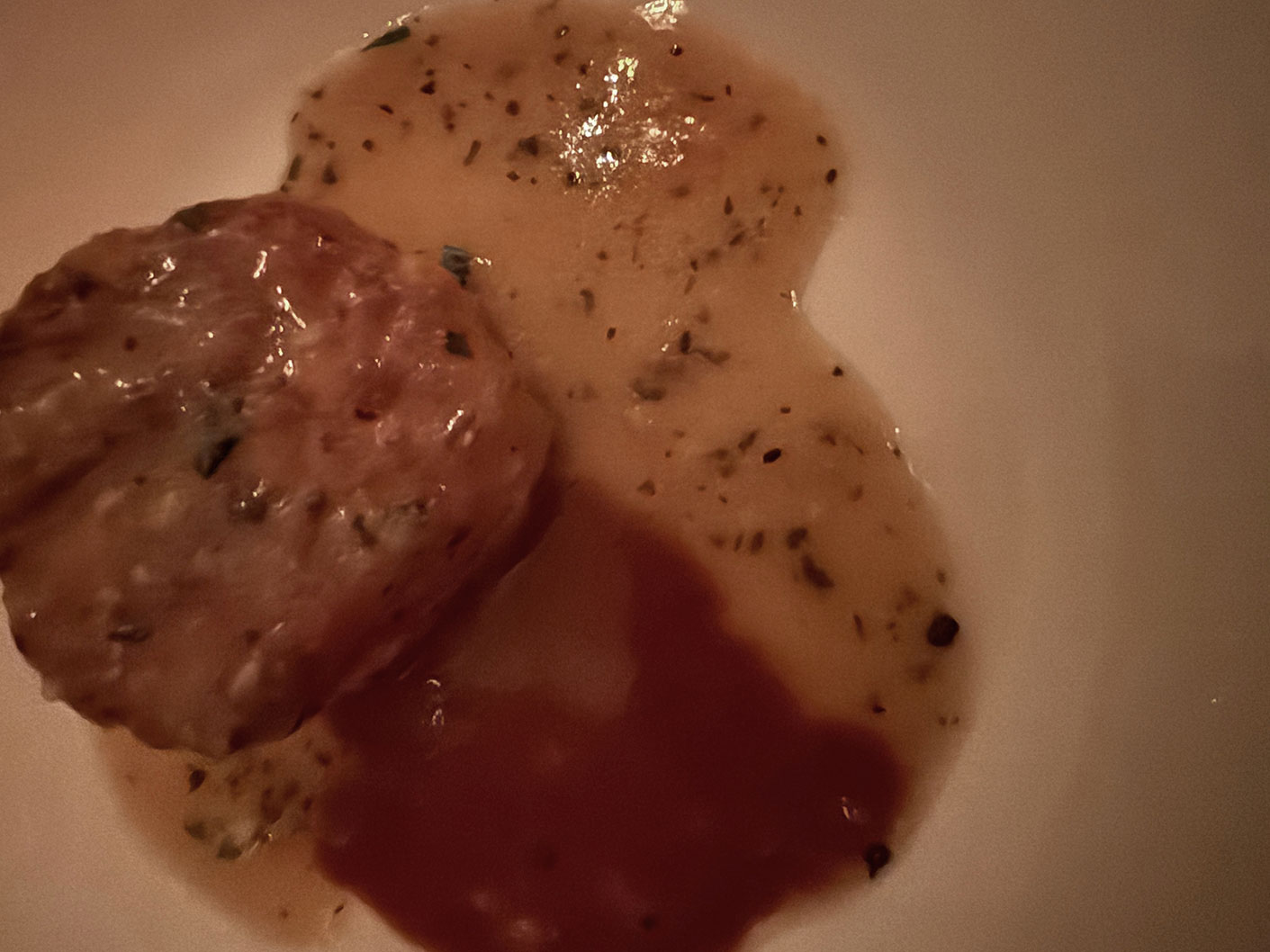 It smelled wonderful in there and I was starting to get really hungry. Once everyone was settled in their seats, the server stood in the middle of the dining room and announced the menu options for that evening. I felt like I was in the movie the Menu.