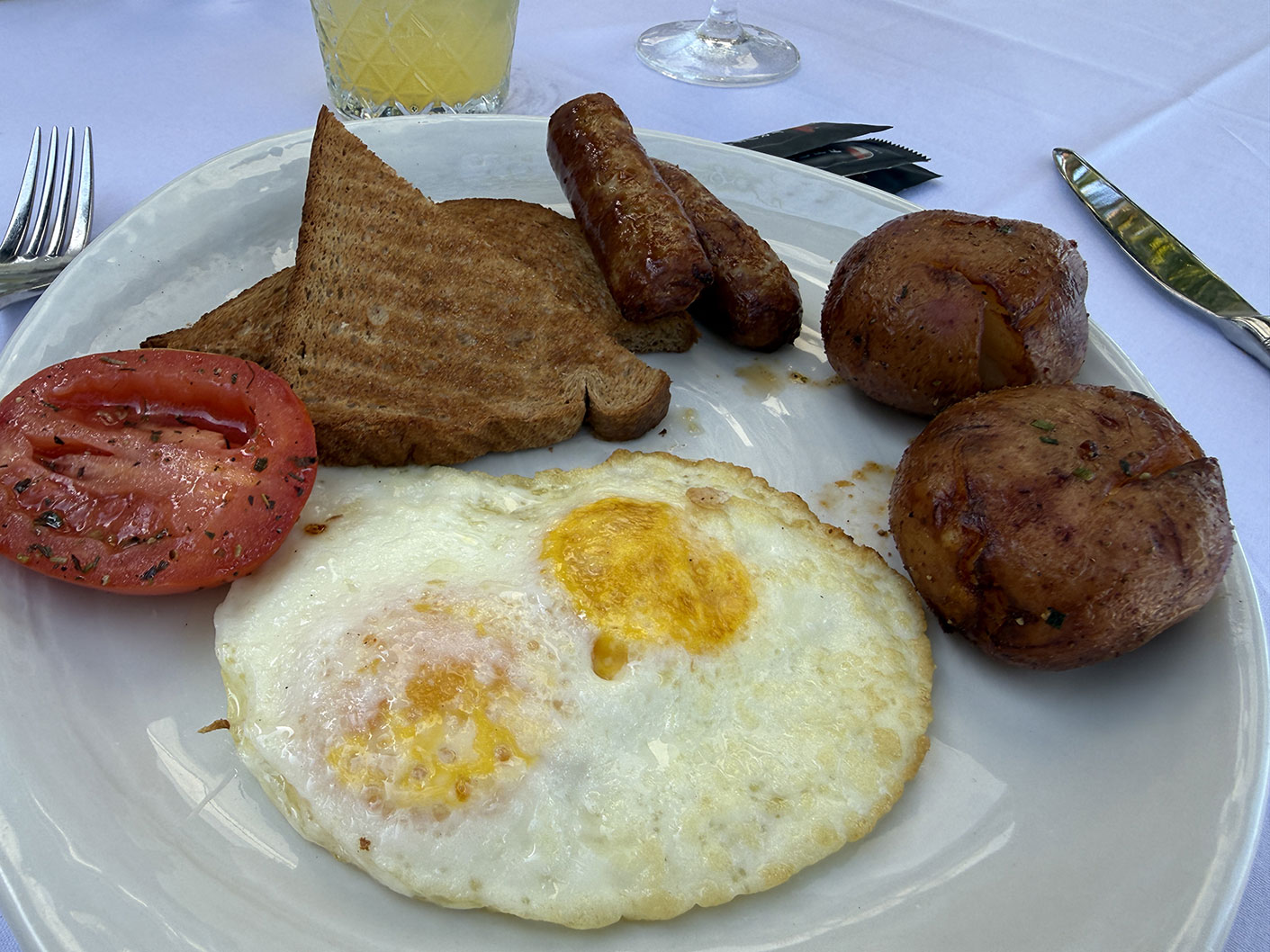 Everything was tasty and enjoyed by all of us. We did speculate about the breakfast potatoes. They were prepared roasted and then fried, I think – but they were served whole. We joked saying if we could, we would take the leftover potatoes with us and make a side dish later.