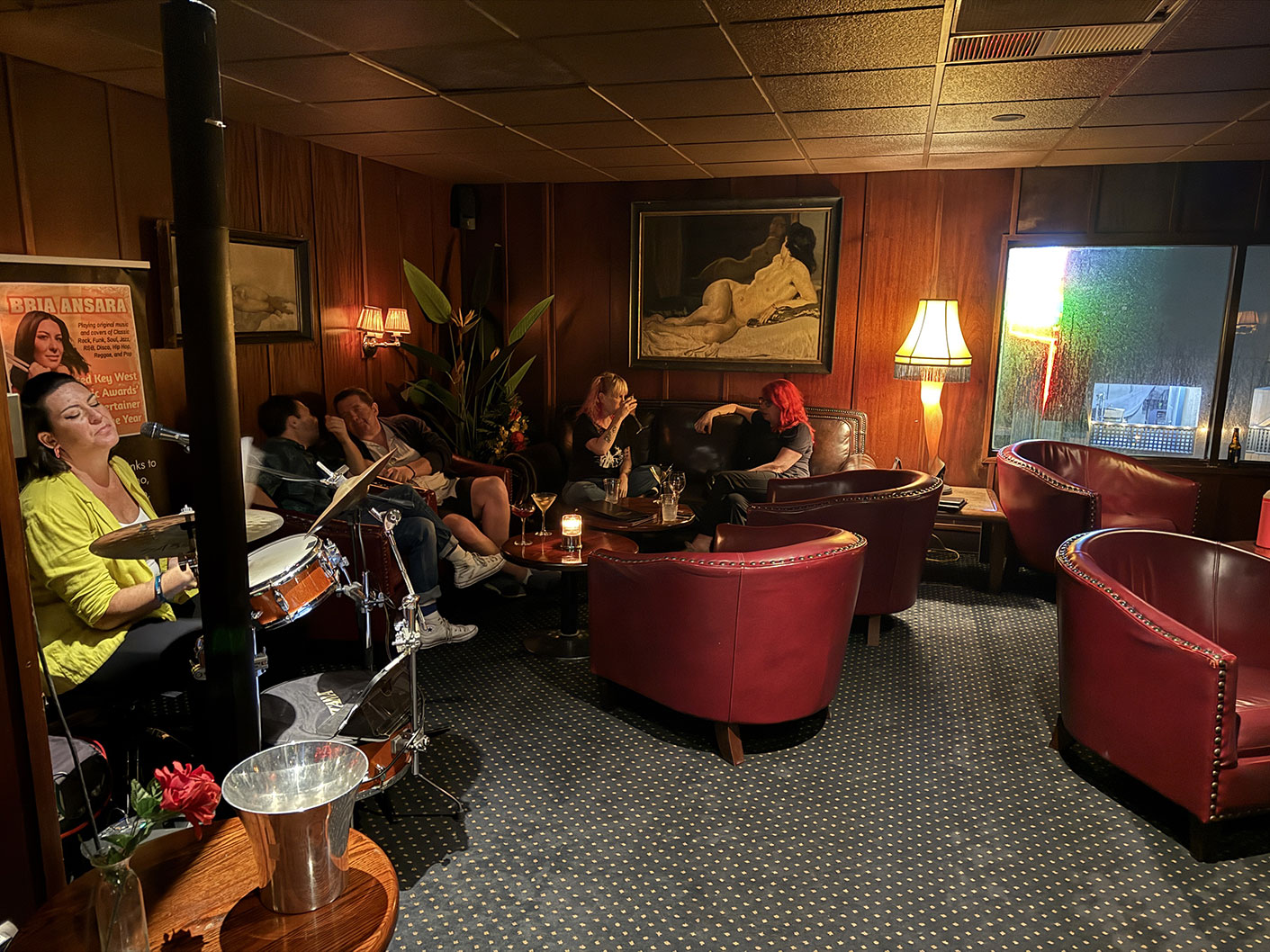 When we returned, the staff was already setting up for Jazz. Luckily they didn’t move the chairs next to the bar so we were able to secure them for a good view and out of the way.
