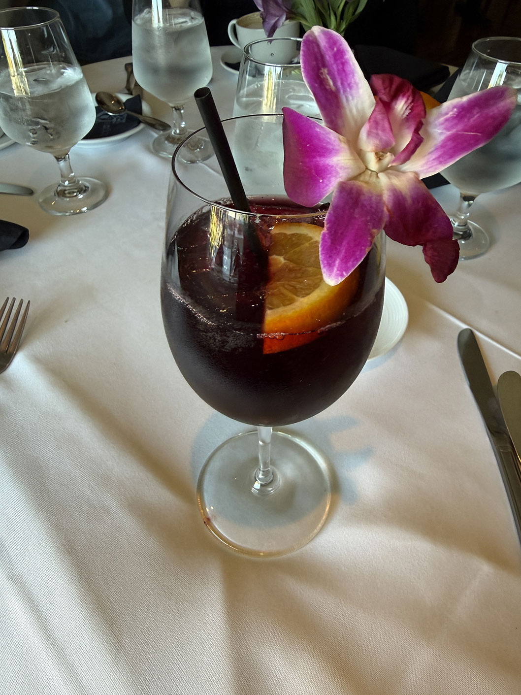 After our meals we walked back to the Gardens and enjoyed a night cap in the gazebo. I checked my phone and saw that the Seahawks beat the Rams. Then I saw a message from our cat sitter. She told me that the storm was slowing down and we wound up getting 16 inches of snow. I couldn’t believe it. Luckily before we left, my husband got in touch with our neighbor who has a plow. We left our vehicles at the end of the driveway just in case. I was glad we did, but felt bad for our cat sitter. She had to dig her way out to get to her car. Thankfully though we didn’t lose power. It was getting late and we had reservations for Latitudes the following morning. It was time to get some sleep.