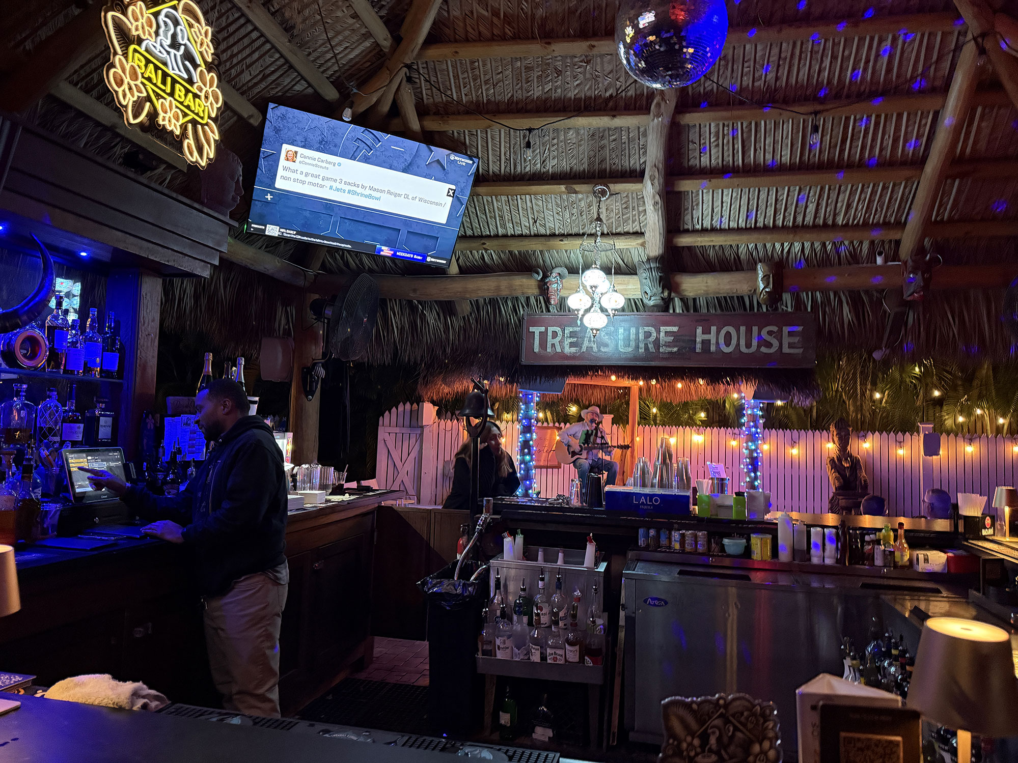 After our little stint at the Alamo, our next stop was the Bali Bar. We walked in and Jacin was working again. We said hello and took our seats. He and some of the Bali Bar staff were help setting up for a singer named Josh Kiser.