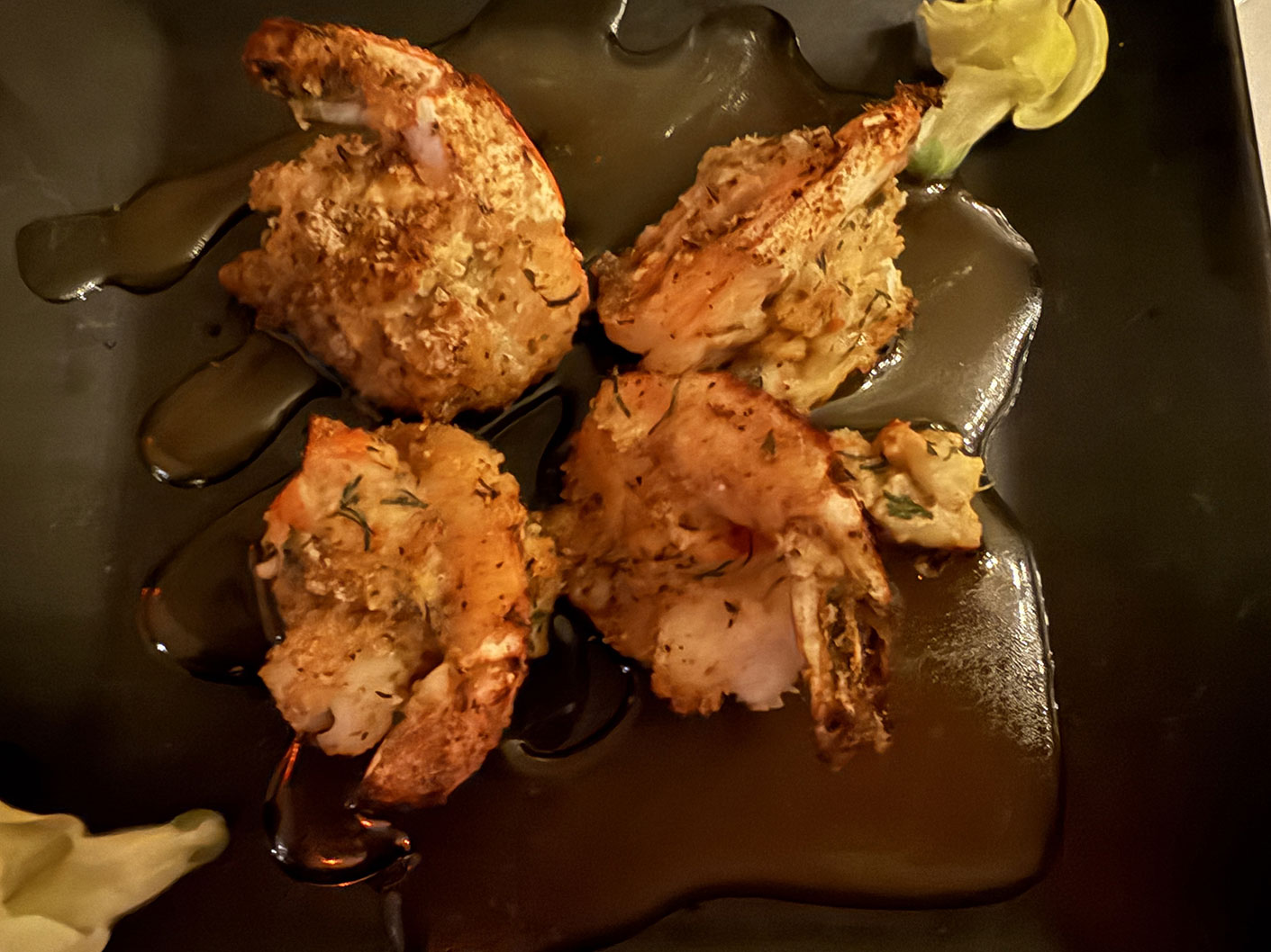 The place was packed, that’s why I would recommend reservations otherwise good luck getting a table. I remember one time however, they accommodated us when it was just my husband and I and we sat at the bar. Our appetizers arrived and the baked shrimp were tasty. There wasn’t a lot of lobster stuffing per say, but it was good. Everyone else liked the eggs and scallops. I was going to have one, but wanted to save my appetite for the black grouper.